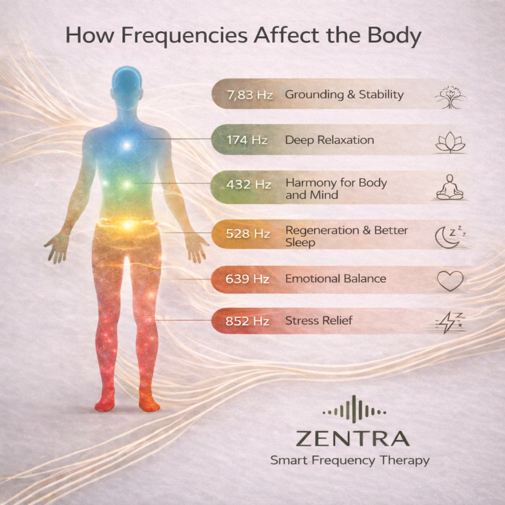 Through targeted frequencies, ZENTRA supports your body when it needs more flow, more release, and more balance.