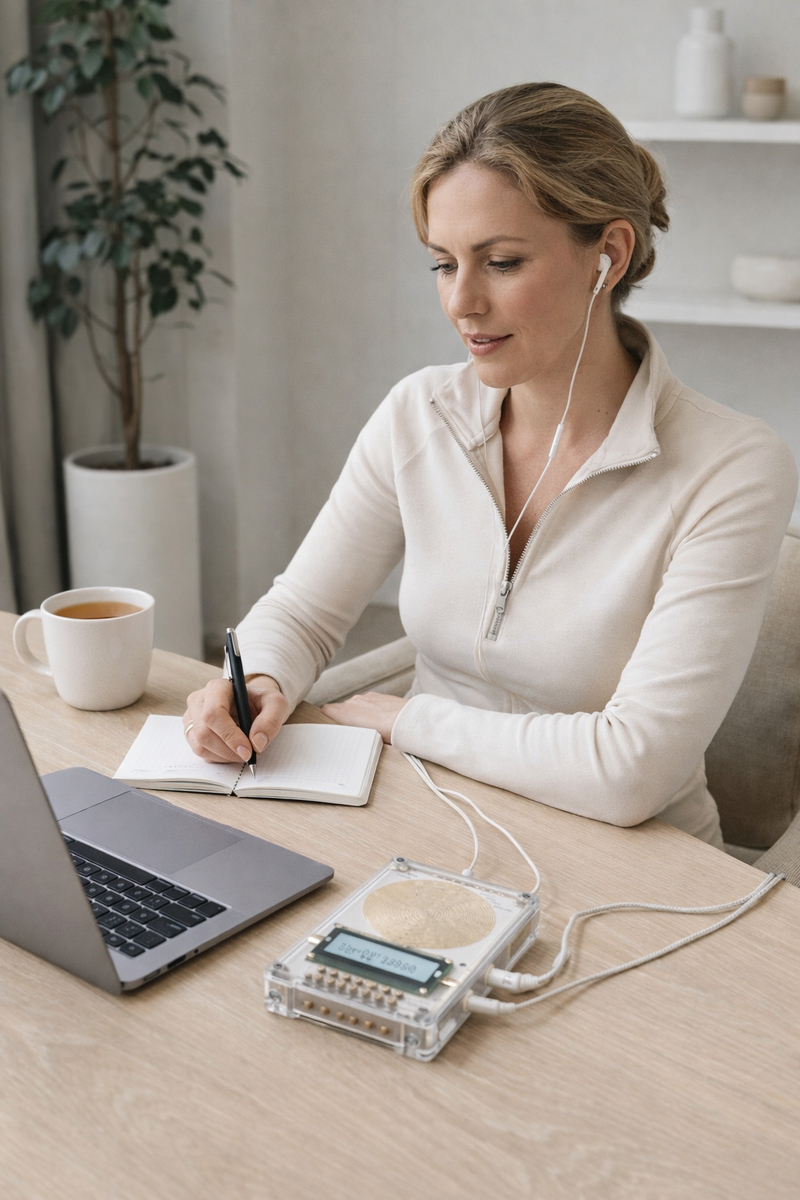 The core of the system. Designed to emit real targeted frequencies and guide your body toward more release, more flow, and more balance.